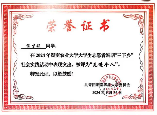 2023级MPacc专业研究生任才旺于本次暑假多次下乡,积极投身参与到2024年暑期老员工社会实践之中。7月初,任才旺跟随beat365手机版官网入口助力红星村乡村振兴博士团、“乡村CEO”知农爱农服务队,深入湖南省怀化市溆浦县卢峰镇红星村开展2024年"红色+"博士团暨老员工"三下乡"暑期社会实践活动和第三届“芙蓉学子·乡村振兴”公益计划。同时,作为项目团队负责人,与团队实施为期近两个月的"乡村 CEO "公益项目,践行社会责任实践。