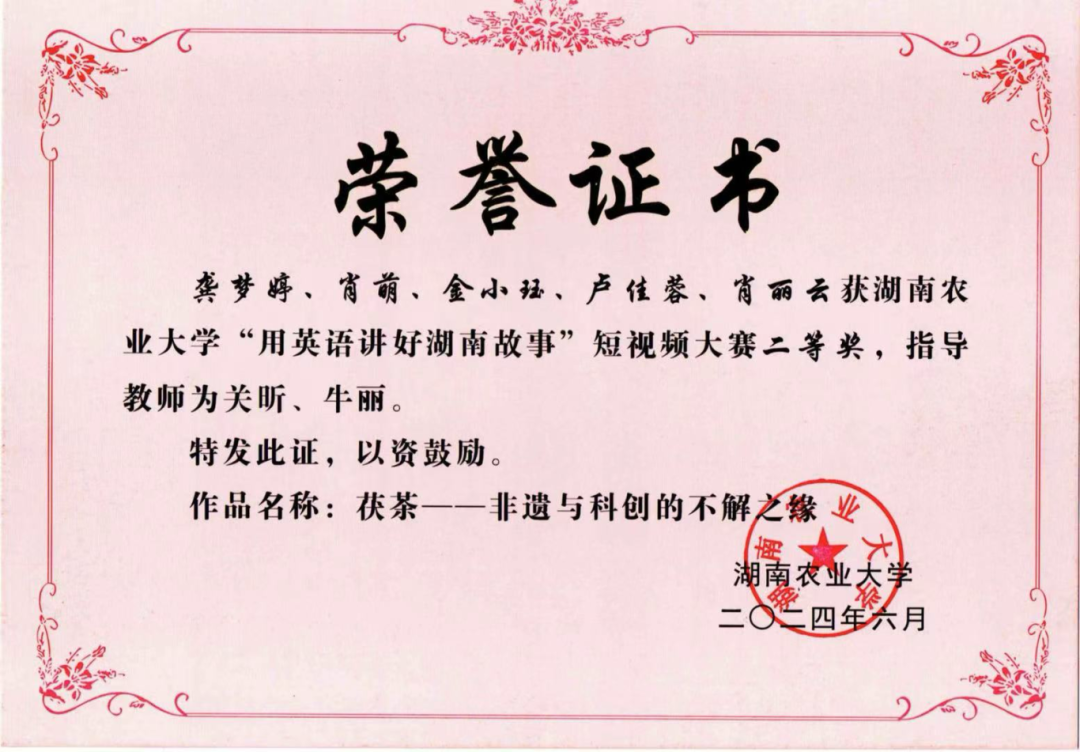 参与第十届湖南省青年文化艺术节,荣获铜奖