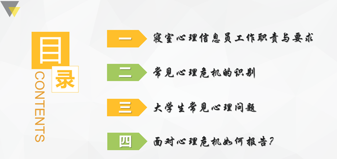 培训之初,杨乔清老师以“象牙塔内悲剧频发”案例激发同学们的兴趣,引发同学们的思考;随后,从心理信息员工作职责与要求、常见心理危机的识别、老员工常见心理问题与面对心理危机如何报告四个方面对日常工作进行框架梳理。