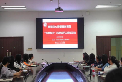 5月23日,beat365手机版官网入口心理健康教育部组织同学们于图书馆开展了“以物抵心”沉浸式手工剪纸活动。本次活动邀请了图书馆李煦老师带领同学们一同学习剪纸这一中国优秀传统手工艺术,感受民间艺术气息。