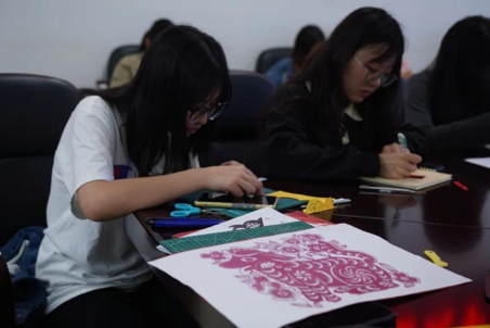 首先李煦老师带领大家了解剪纸这一中华文化瑰宝。每逢过节或新婚喜庆,人们便将精美的剪纸贴在家中窗户、墙壁、门和灯笼上,节日的气氛也因此被烘托得更加热烈。大家共同体会优秀传统剪纸背后的深刻含义,端正态度,认真对待剪纸这一手工艺术。