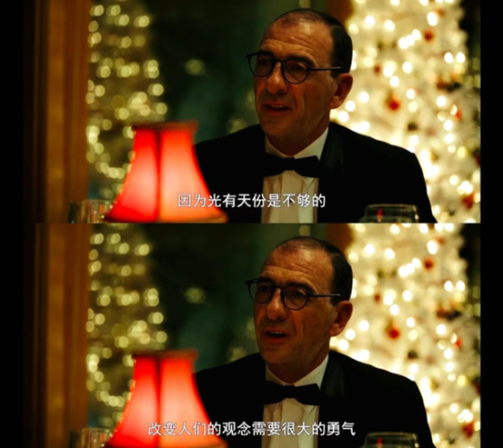唐独自忍受轻视,因为肤色和偏见,白人对他嗤之以鼻,因为骄傲和才华,他融入不到黑人的生活中。唐所有外表的华荣,都不能填补他内心的孤独,尽管在舞台上收获无数掌声,却无法得到社会真正的尊重与认可。但在托尼的陪伴、维护下,他迈出了许多第一步,吃炸鸡,把垃圾扔出窗外。唐慢慢挣脱偏见、规矩的束缚,活的更加自我,结识更多朋友。他值得我们学习的何止勇气,还是敢于在混沌中觉醒,在无人知晓处矗立,走出孤独,改变自己的决心。