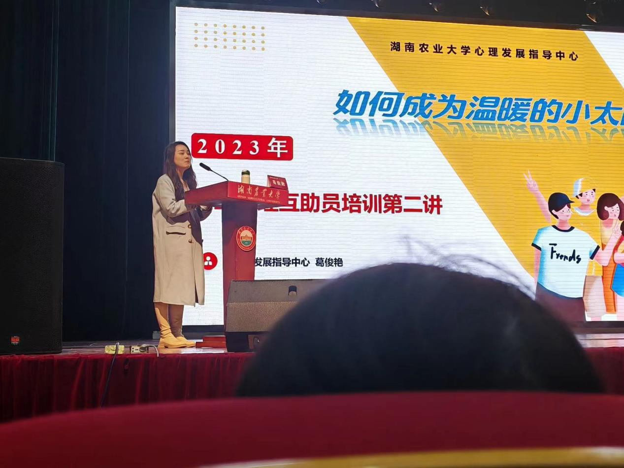 11月27日心理中心葛俊艳老师在大礼堂开展“如何成为温暖的小太阳”培训,带同学们了解朋辈互助员的成长之路,让朋辈互助员懂得“我们是谁”“要做什么”“该怎么做”,帮助大家更好地成为温暖的小太阳。