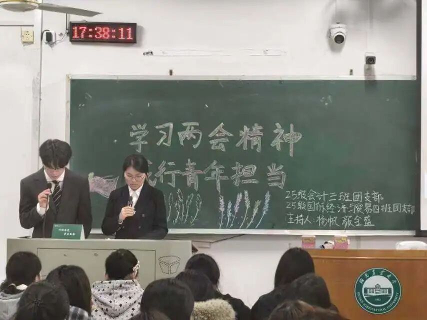 本次学习紧扣2026年全国两会精神及“十五五”规划部署展开。主持人系统解读了两会提出的重点任务、发展方向及青年成长机遇,帮助同学们厘清国情大势与时代方位。在主题研讨环节,同学们结合商科专业特色与自身实际,围绕两会热点议题、国家发展蓝图与青年责任担当深入交流探讨,进一步明确了新时代青年的实践方向与使命任务。现场气氛热烈,交流深入,充分展现出湘农学子积极向上的精神风貌。