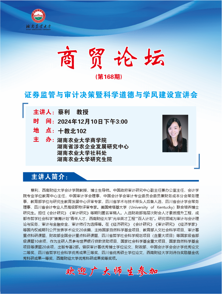 【商贸论坛.第168期】证券监管与审计决策暨科学道德与学风建设宣讲会