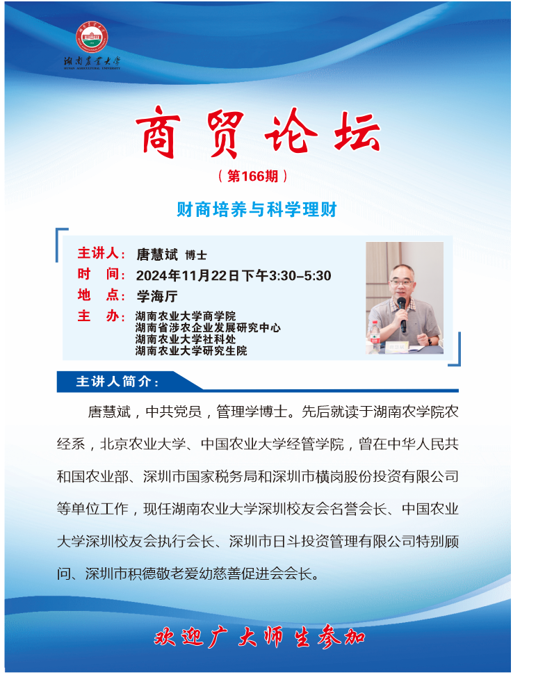 【商贸论坛.第166期】财商培养与科学理财