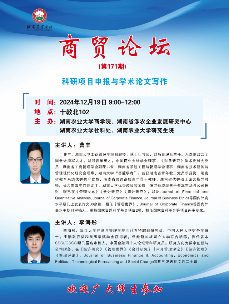 【商贸论坛.第171期】科研项目申报与学术论文写作