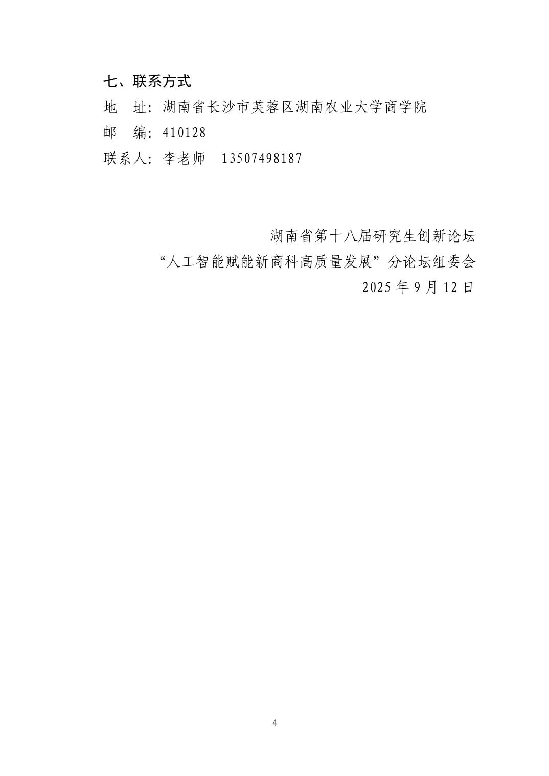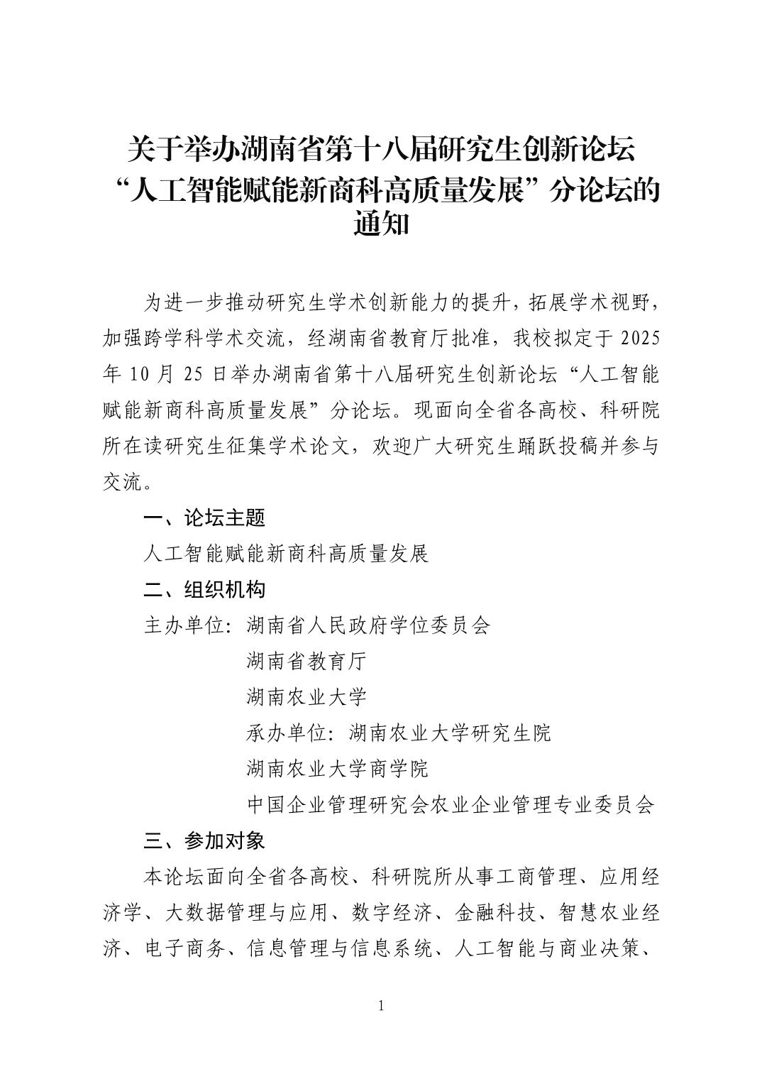 关于举办湖南省第十八届研究生创新论坛 “人工智能赋能新商科高质量发展”分论坛的通知