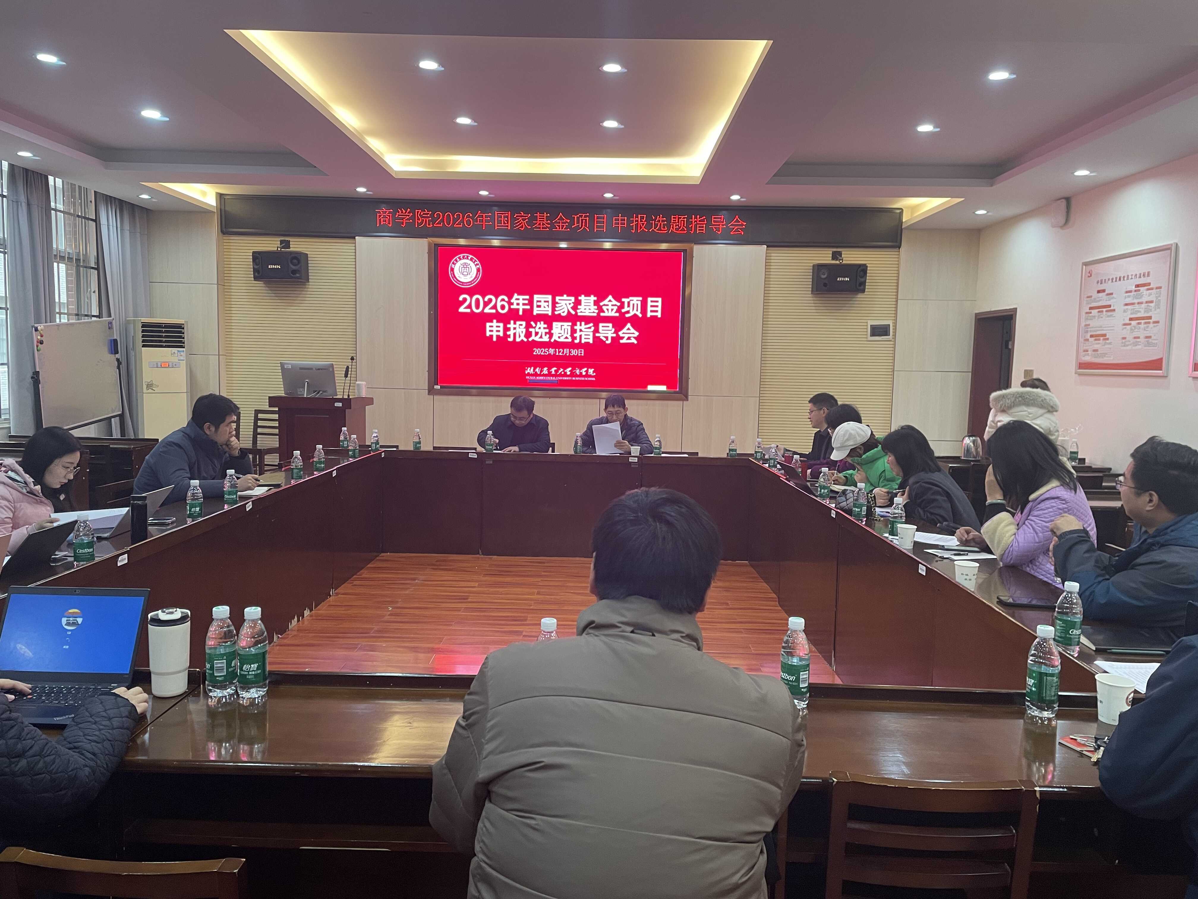 本网讯(beat365手机版官网入口 翦润芳)为提升公司国家基金项目申报质量,提高项目选题和申报水平,公司于12月30日上午在十教北103召开2026年国家基金项目选题指导会。会议邀请武汉大学经济与管理公司教授,教育部长江学者特聘教授李青原进行指导。指导会由经理杨亦民主持,副经理莫鸣出席,公司2026年度国家基金项目申请人、教师代表共20余人参加。