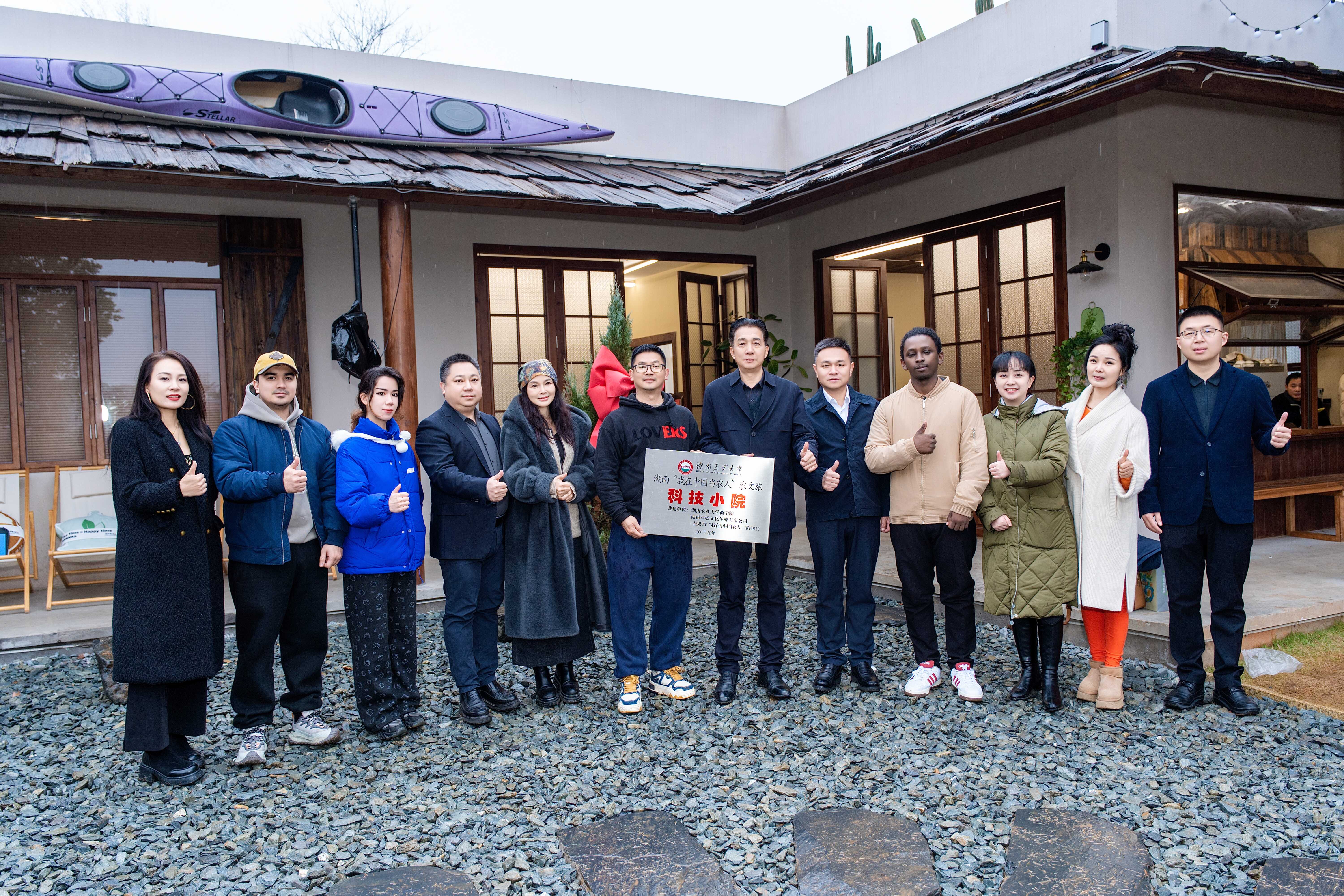 仪式上,陈光辉教授为科技小院授牌。该小院由beat365手机版官网入口与湖南亚歌文化传媒有限公司(芒果TV“我在中国当农人”栏目组)共建,唐文源担任首席专家,《我在中国当农人》出品人甘琼担任首席实践专家。小院成员有校外实践指导老师、beat365手机版官网入口导师、研究生、本科生、职工。